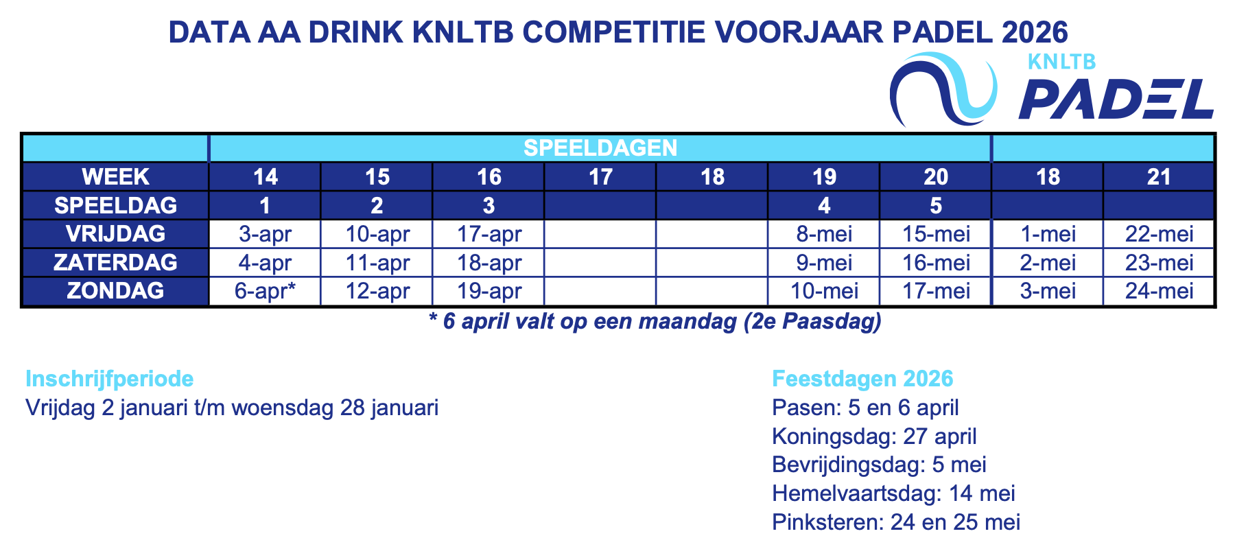 Tijdens de Voorjaarscompetitie Padel wordt er op vrijdag, zaterdag en zondag gespeeld in verschillende klassen. De competitie is voor iedereen: beginners, licht gevorderden, gevorderden en wedstrijdspelers.